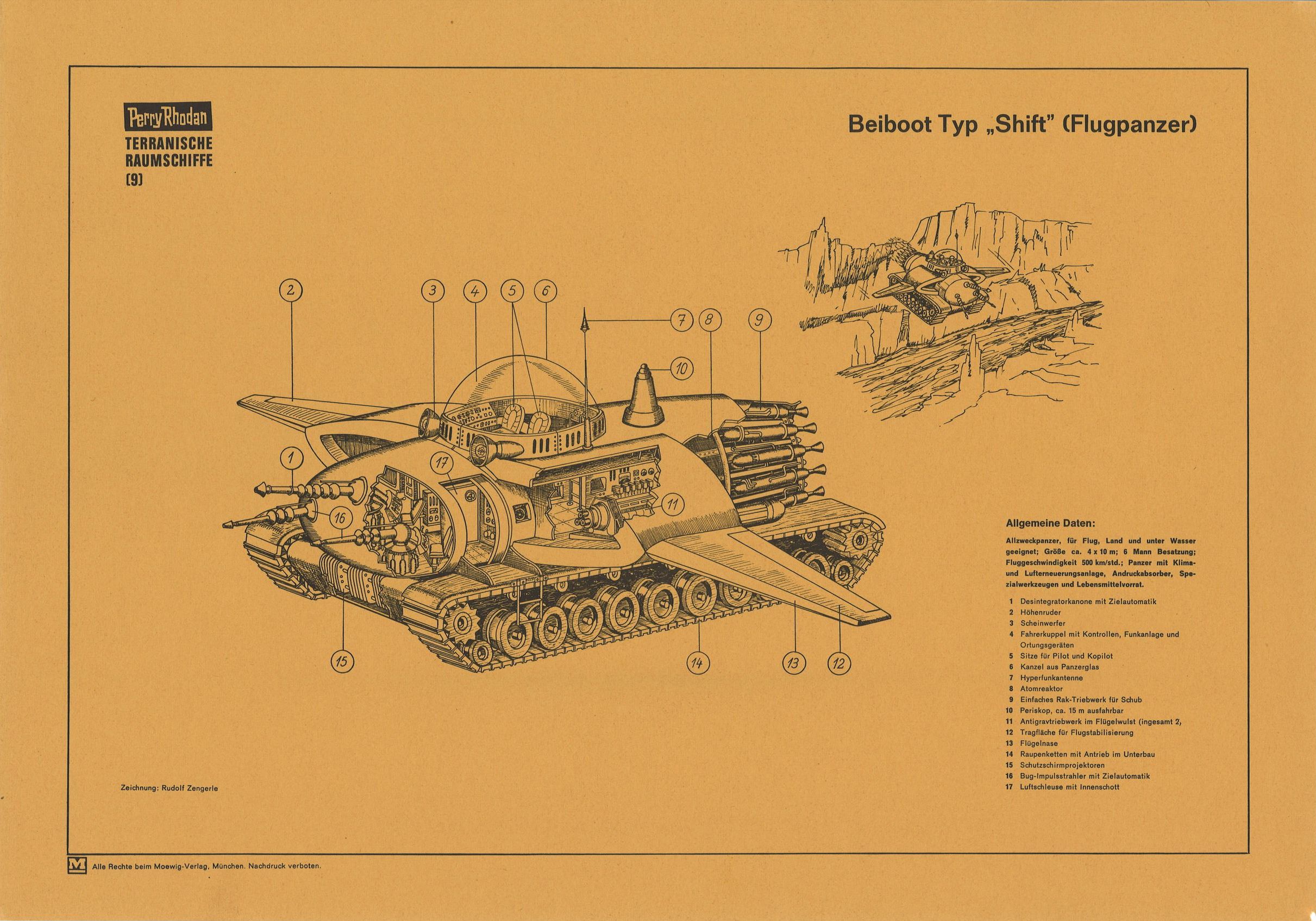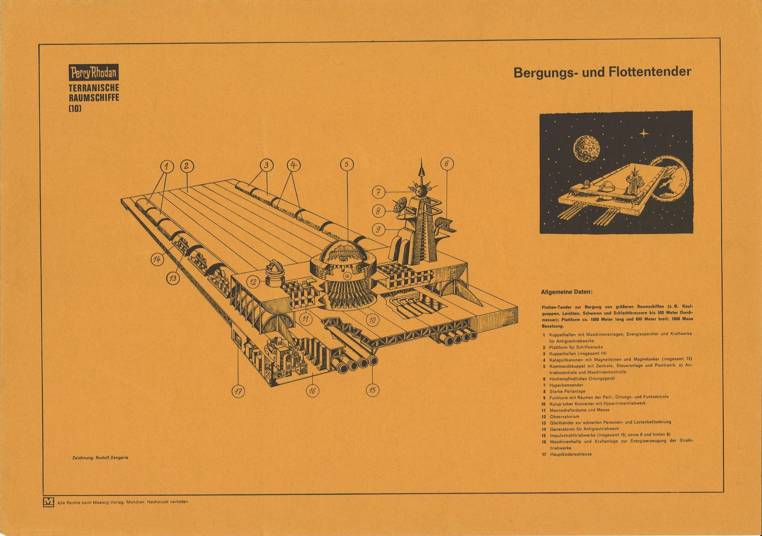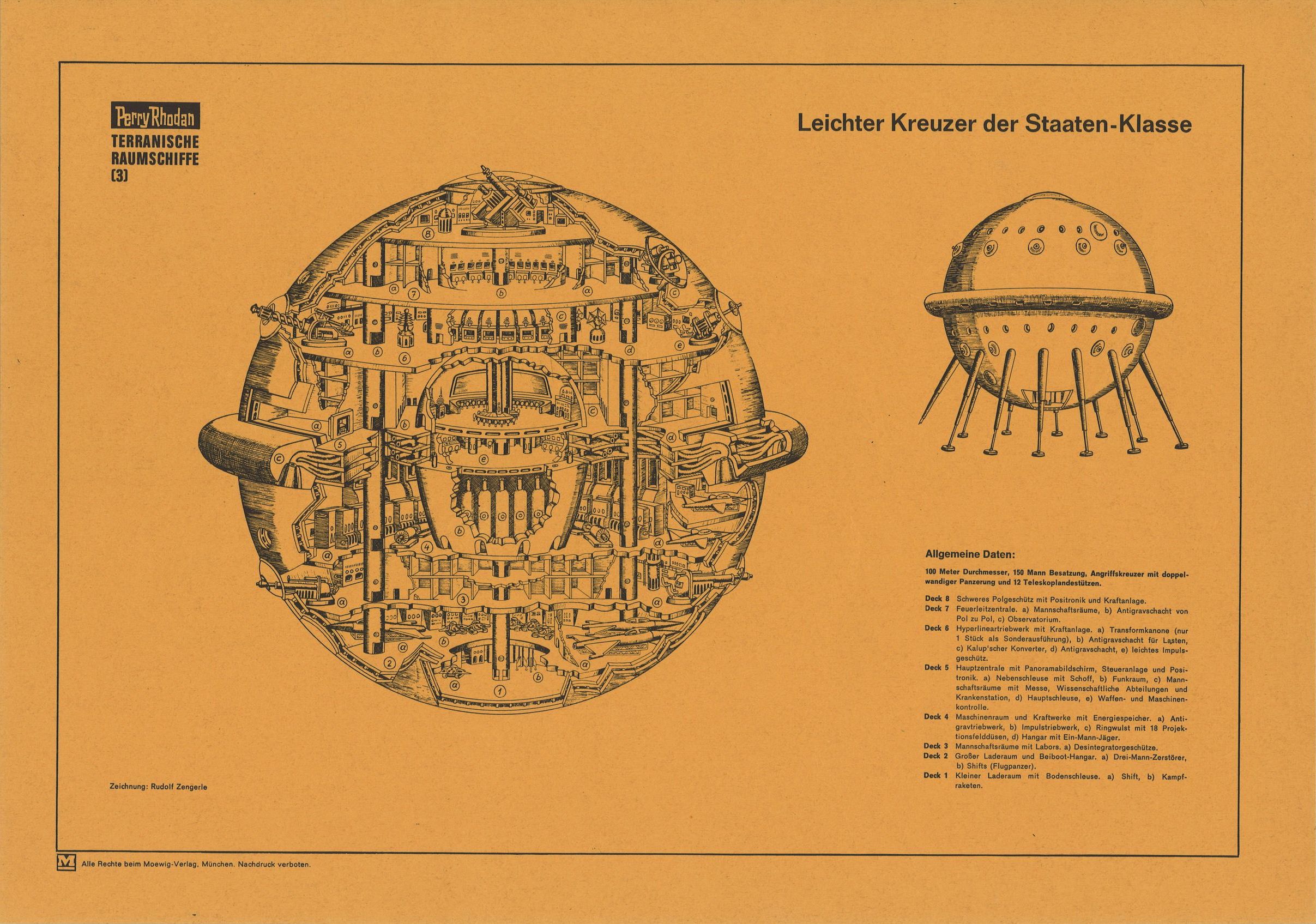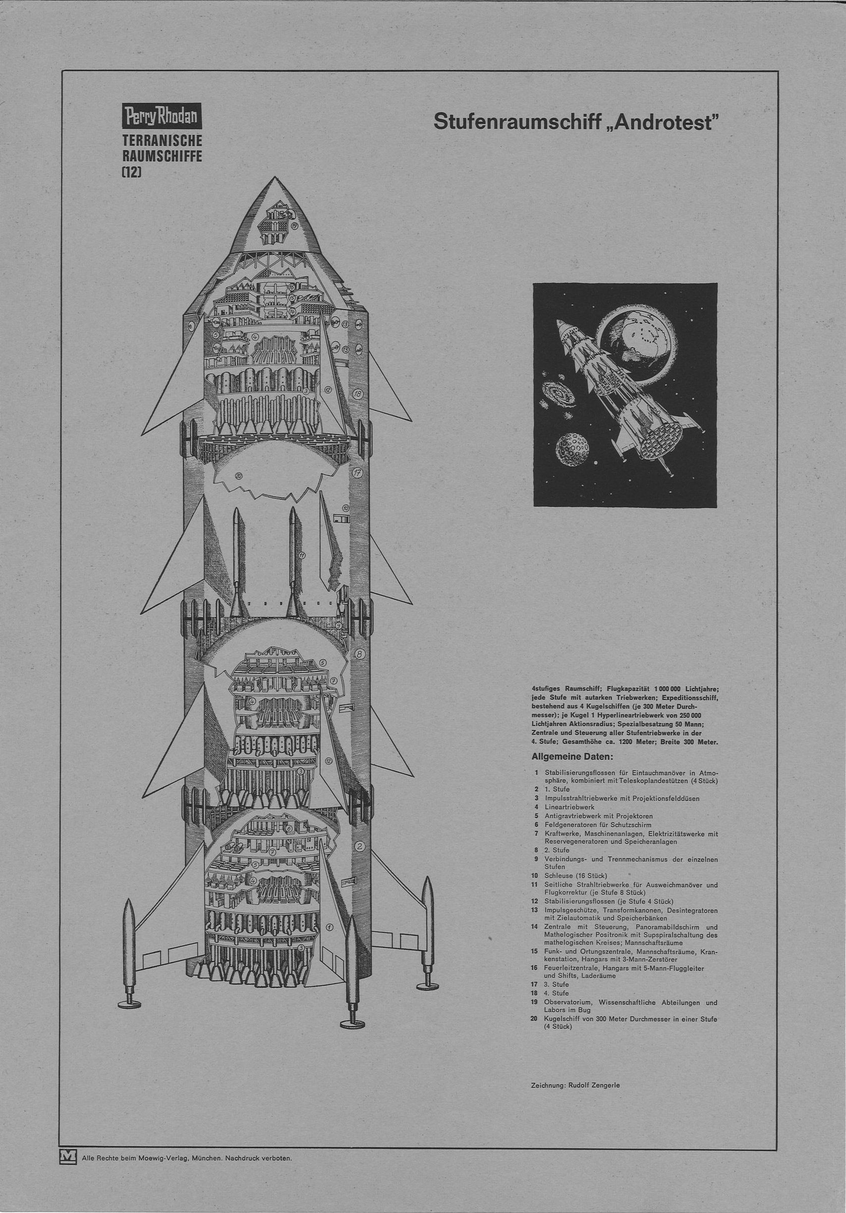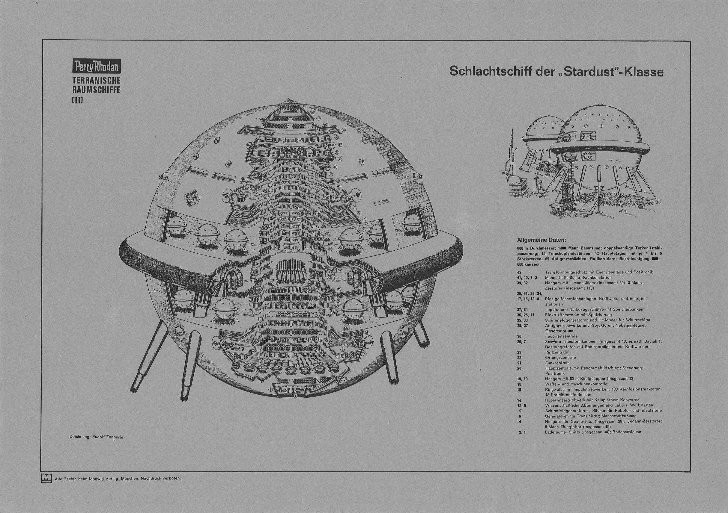 Perrypedia: "1966 wurden die ersten zwölf Motive aus den Heften 192 bis 266 als Sonderdrucke auf getöntem Primula-Karton im Format 42x29 cm veröffentlicht. Diese waren in zwei Halbsortimenten oder in einem Gesamtsortiment für DM 4,80 erhältlich: "Ein sehr schönes Sammelobjekt für alle Perry-Rhodan- und Weltraum-Fans. Auch als Wandschmuck - zeitlos aktuell! Wirken wie alte Stiche." (Werbehinweis in PR 265)"
